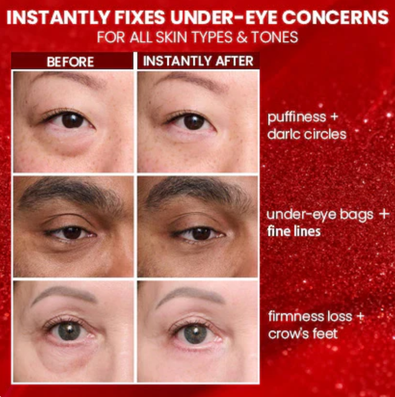 - Clinically proven to immediately reduce the look of under-eye puffiness, fine lines, deep wrinkles and crow's feet for a temporary effect that can last all day! Easy to apply and comfortable to wear, this scientifically advanced eye tightener blends onto all skin types and tones and won’t pill under makeup.